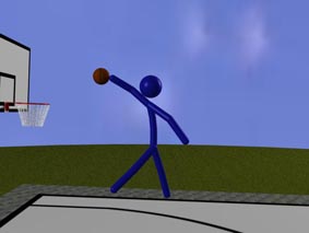 Im Rahmer der Übung "Geometrische Modellierung & Animation 2 " an der Fachhochschule Wedel im Sommersemester 2004 entstand von mir eine Animation eines Basketaballspielers.